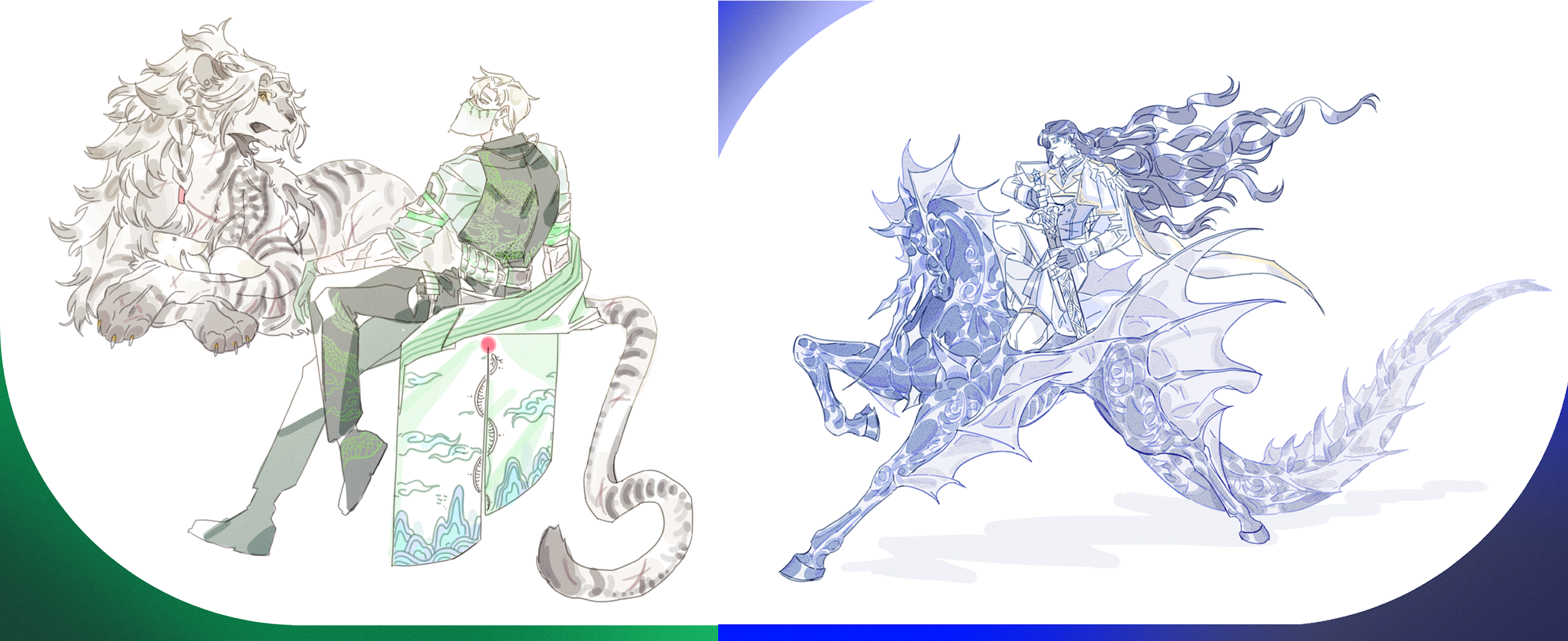 ▶ 위 커미션 두 장의 호랑이, 말은 전혀 신청하지 않으신 동물들입니다(...). 제가 설정 보고 멋대로 넣은 겁니다.